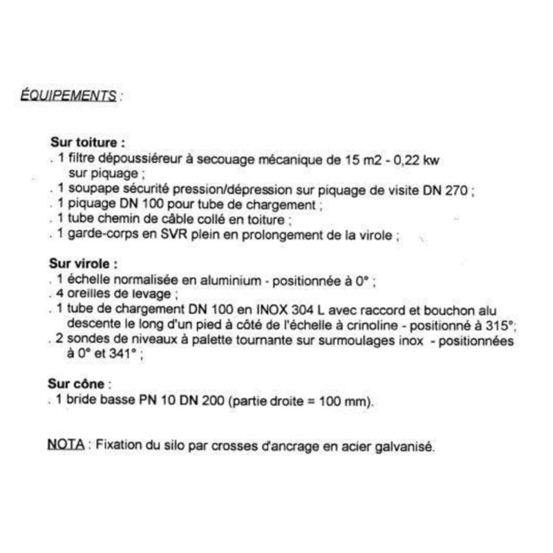 Fond conique 60° sur pieds, avec échelle à crinoline
