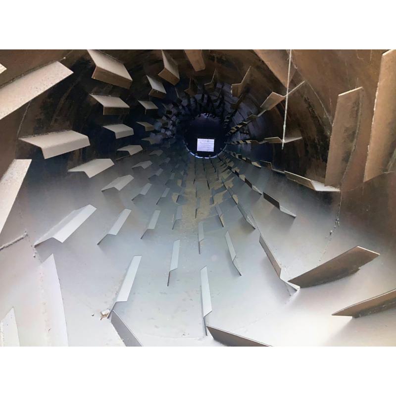Four rotatif acier calorifugé avec releveurs internes sur toute la longueur de la virole, cyclone et écluse, ventilateur et brûleur.